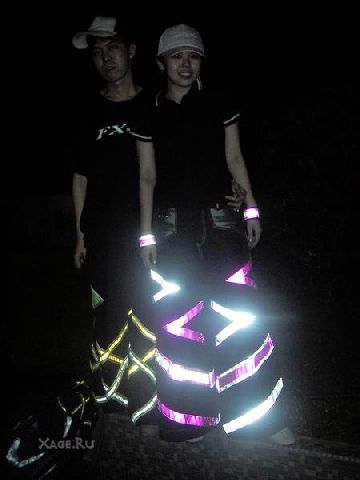 В Японии всё с большим размахом набирает мода на светящиеся штаны. На вечеринке вы точно теперь будете в центре внимания, даже если и не хочется.