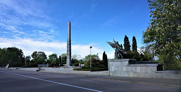 Он был торжественно открыт 30 сентября 1945 года и стал первым мемориалом в СССР, увековечившим подвиг советских солдат, павших в Великой Отечественной войне. В 1946 году на флангах мемориального комплекса на ступенчатых постаментах были установлены бронзовые скульптурные группы «Штурм» и «Победа». 9 мая 1960 года перед стелой был зажжен Вечный огонь. Сюда жители города приходят, чтобы отдать дань памяти героям.