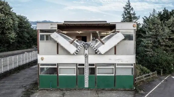 Алекс Чиннек — знаменитый британский скульптор, чьи работы не так-то просто выбросить из головы. В основном потому, что он не боится попотчевать зрителей чем-нибудь эдаким — расстёгивающимися фасадами зданий или левитирующими особняками, например.