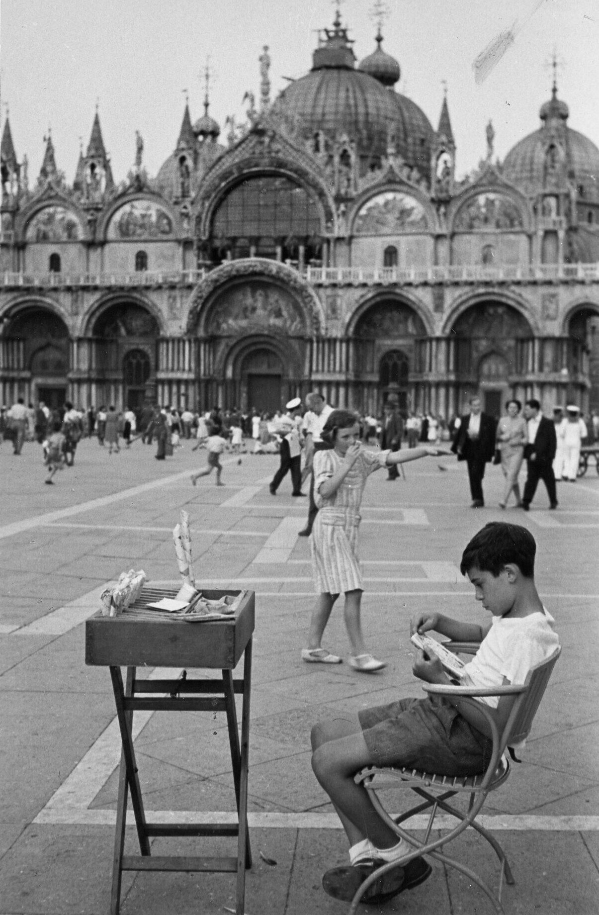 Продажа еды для голубей на площади Сан-Марко, Венеция, Италия, 1951 год. Фотограф Рут Оркин