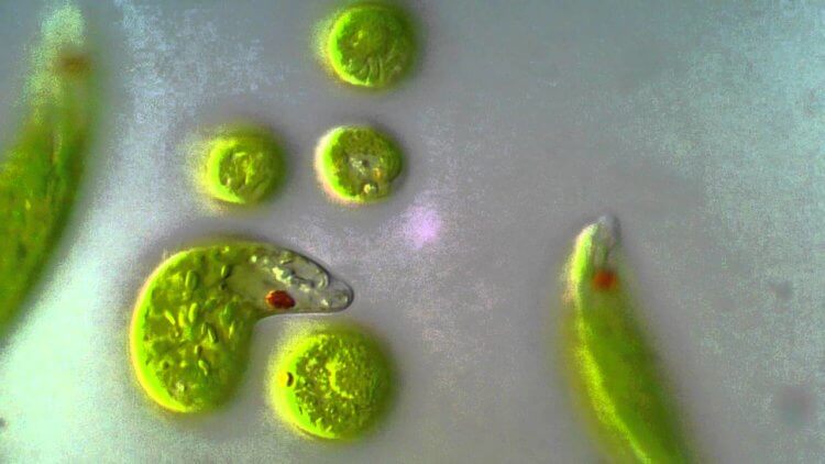 Эвглена зеленая под микроскопом