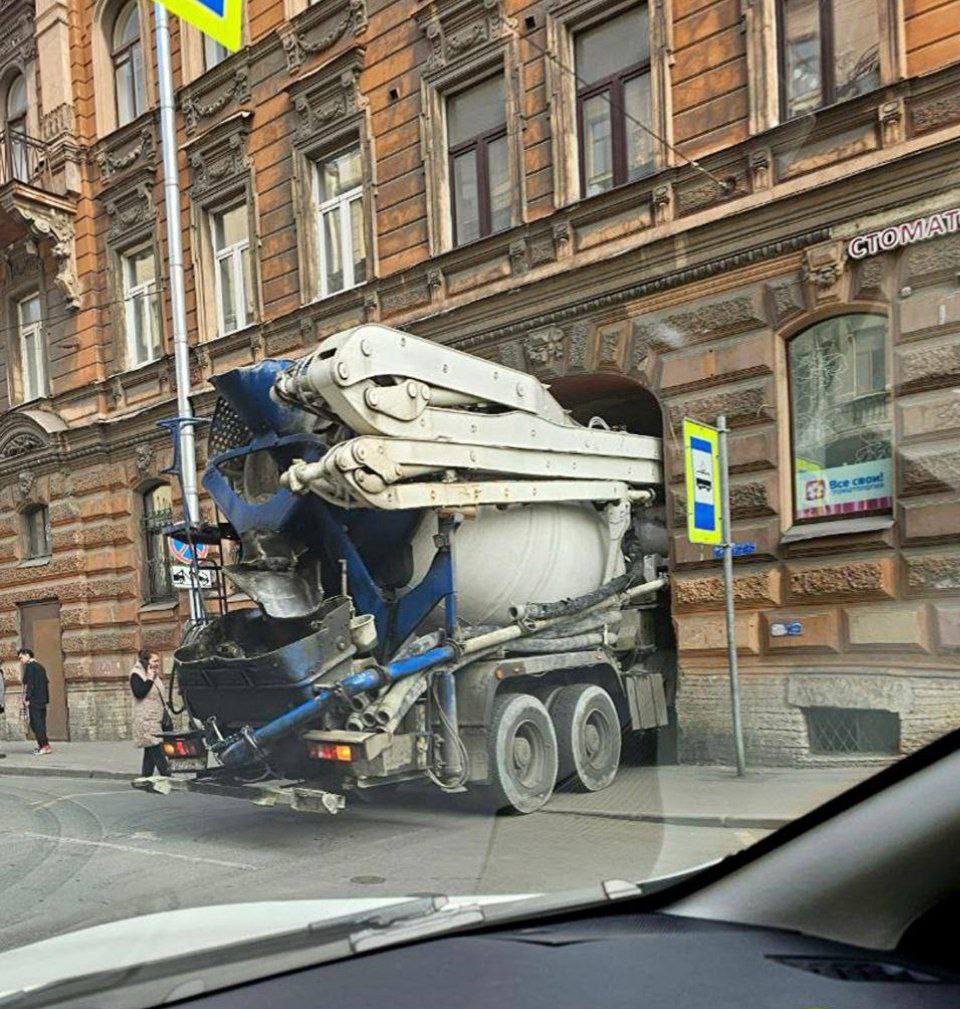 День дурака по-питерски: водитель бетономешалки попытался проехать через арку, но что-то пошло не так. Просчитался, но где?