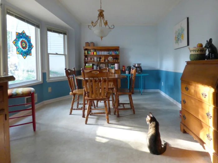 «Моя кухня в лучах утреннего солнца. И вглядитесь хорошенько в поисках кота. 85 процентов своей жизни он проводит на этом месте»