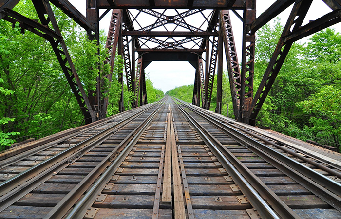 На железной дороге можно увидеть много интересного и зачастую совершенно непонятного для человека, непосвящённого в тему. К примеру, конструкция рельсов на мосту очень странная. Помимо двух главных рельсов, по которым катятся колеса, прямо внутри колеи на небольшом расстоянии от них лежат еще два.