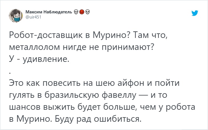 В сети обсуждают фото из Мурино с роботом-доставщиком и мужчиной с топором. Настоящий киберпанк в реальности!