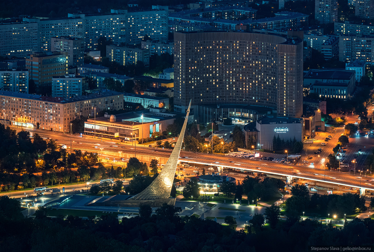 3. Монумент на фоне гостиницы «Космос».