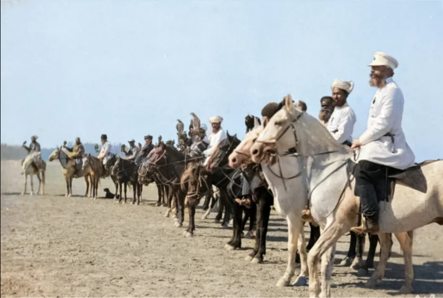 Хивинский хан в окрестностях Ташкента на соревнованиях ловчих птиц, 1890 год.