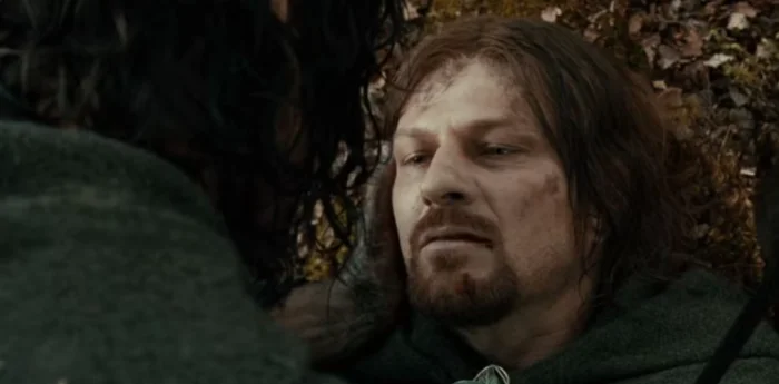 Эти слова — прямая цитата из книги, сказанные Фарамиром, братом Боромира, и придают смерти еще более глубокое, философское значение.