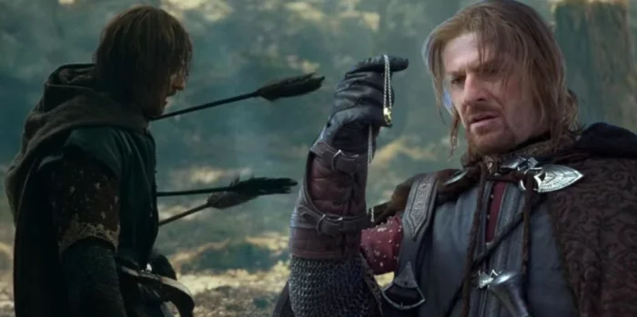 И в фильме красиво показано сходство между Исилдуром и Боромиром — оба поддались искушению Кольца. Однако ключевое отличие в том, что, в отличие от Исилдура, который был слеп к злу Кольца, Боромир осознает, как оно развращает его, и решает сражаться с орками, защищая Фродо и хоббитов.