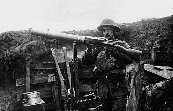 Вообще, эта машинка смерти была создана в США конструкторами Самюэлем Маклином и Айзеком Льюисом. Однако, вооружались им преимущественно солдаты британской армии. Пулемёт широко применялся в Первой мировой войне ещё с 1914 года. В Россию в товарном количестве это оружие поставлялось от союзников по Антанте с 1916 года, а с 1917 года Великобритания и США стали поставлять пулемёты многочисленным антибольшевистским формированиям.