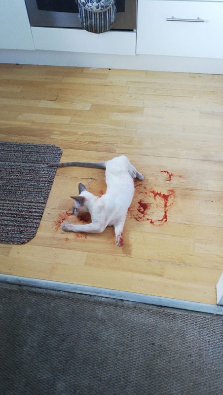 Кто-то разлил смузи в кабинете, и теперь это похоже на место преступления.