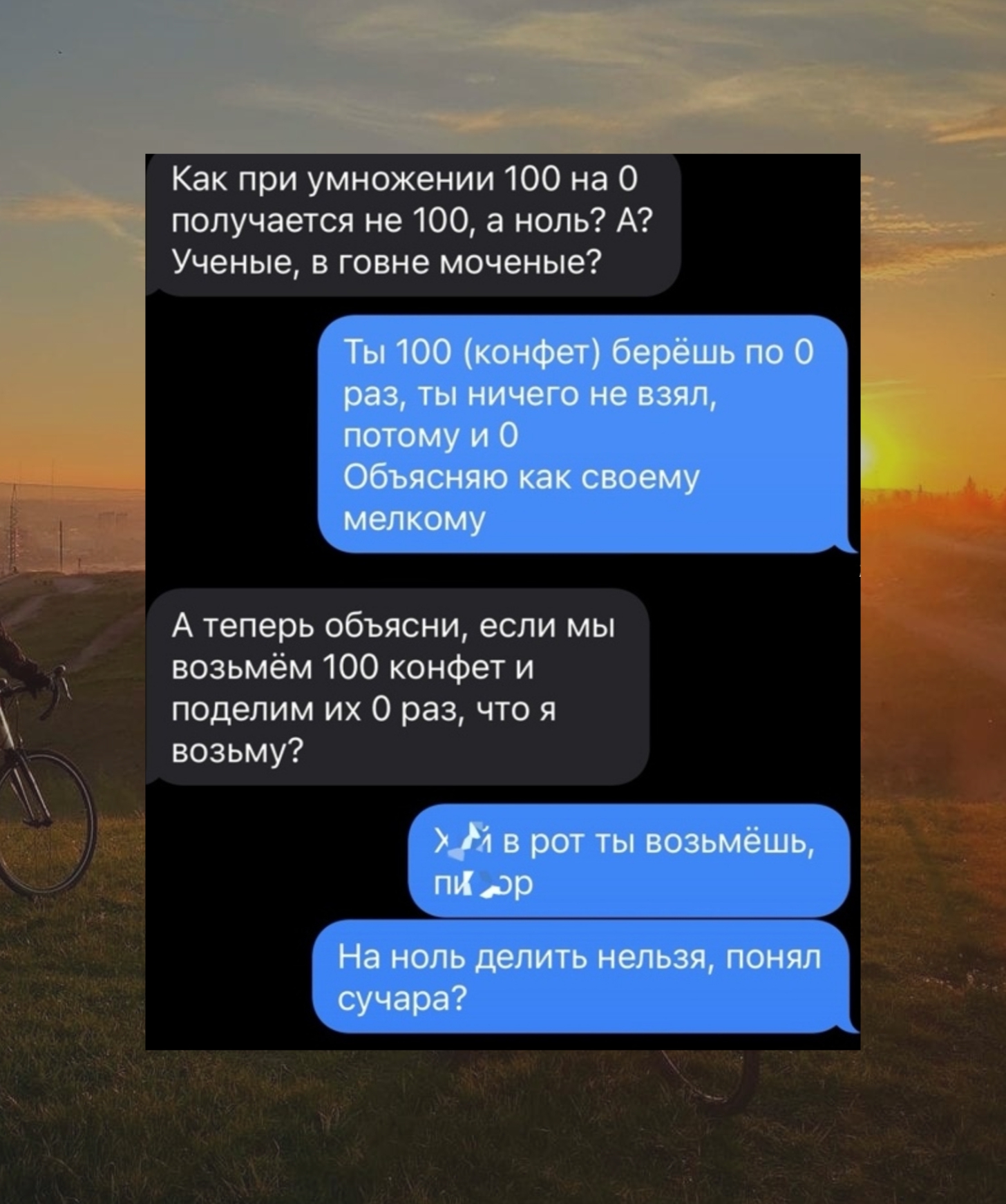 Парень в видео не до конца объяснил, почему на ноль делить нельзя и умолчал ещё об одном нюансе. Так же у людей возникает вопрос: как это проецировать на материальный мир. Постараюсь кратко и понятно это объяснить. Пишу отдельной темой, т.к. мало кто комменты читает дальше первой страницы, а тема интересная и хочется донести суть до людей, что такое бесконечность.