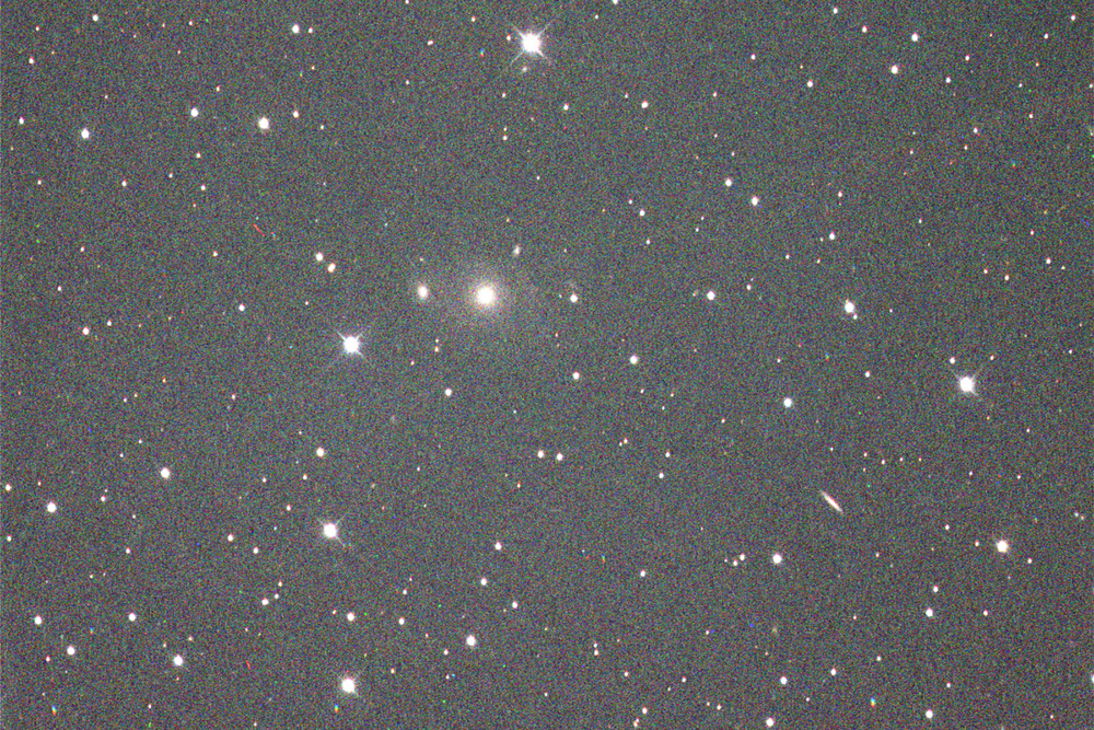 Этот тусклый объектв созвездии Андромеды находится в 2 миллиардах световых лет от Земли. Галактика примечательна тем, что располагается относительно нашей планеты почти плашмя.