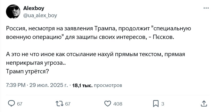 «Ситуация на фронте, особенно на востоке, остаётся сложной. Украина там теряет территории, однако российская армия в последние недели понесла серьёзные потери. Военное захват этих территорий, о которых идёт речь, был бы для России крайне трудным и мог бы занять ещё годы. Но люди в Украине устали от войны, опросы показывают, что до 75% теперь выступают за переговоры. Остаётся надежда, что в итоге европейские государства смогут донести до Трампа, что он не может продать Украину против её воли, и что люди не согласятся на любую сделку. Но ясно и другое: Трамп хочет наконец заключить сделку. Вопрос лишь в том, чего эта сделка может стоить Украине».