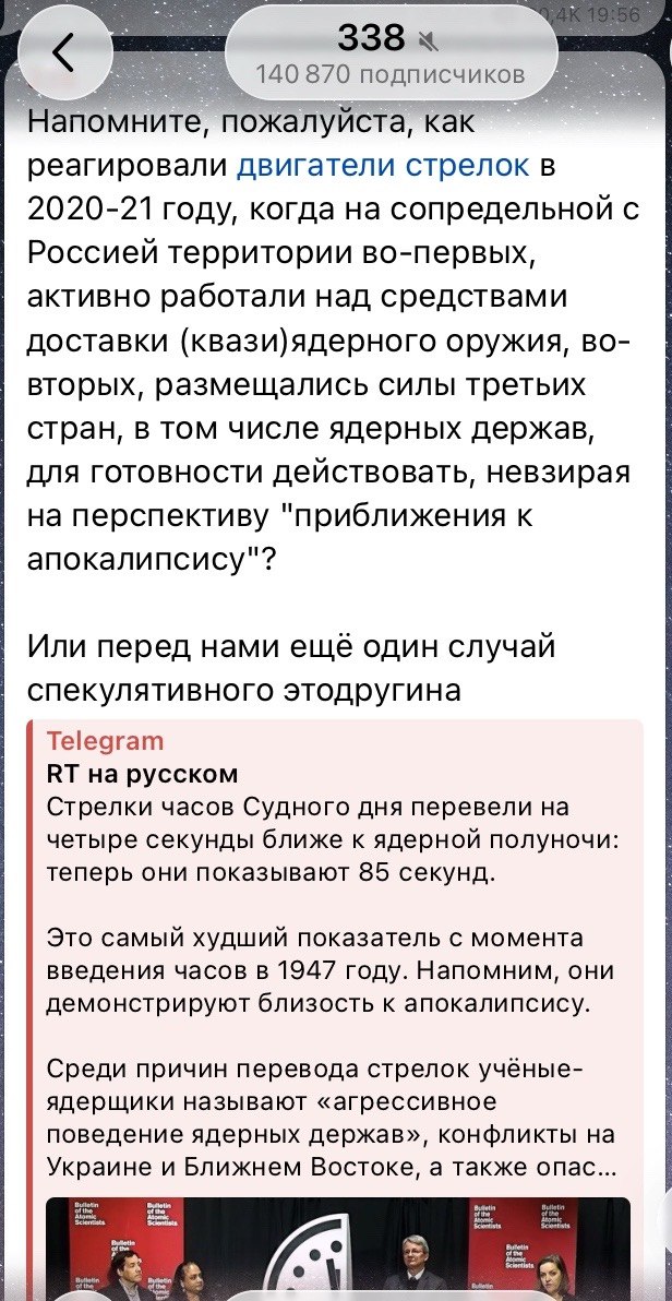С осознанием реальности там вообще плоховато. Одни пытались «нанести стратегическое поражение ядерной сверхдержаве номер один», забыв, что «ядерные сверхдержавы НЕ ПРОИГРЫВАЮТ принципиальных войн»©Demetrius Ursus Coercitor. Проигрывают либо все, либо все, кроме сверхдержавы (причем, наличие на той стороне тоже сверхдержавы не гарантирует, что она проиграет и будет уничтожена). В 2022г. у нас рассматривали (это секрет Полишинеля) вариант, который потом был отложен, и, может, не понадобится, или если только у «коалиции желающих выгрести люлей от Империи» реально взыграет храбрый гашиш в мозгу, и они таки полезут получать то, что давно заслужили — и получат. Пока отложены все эти планы настоящей эскалации (и деэскалационных превентивных ударов).