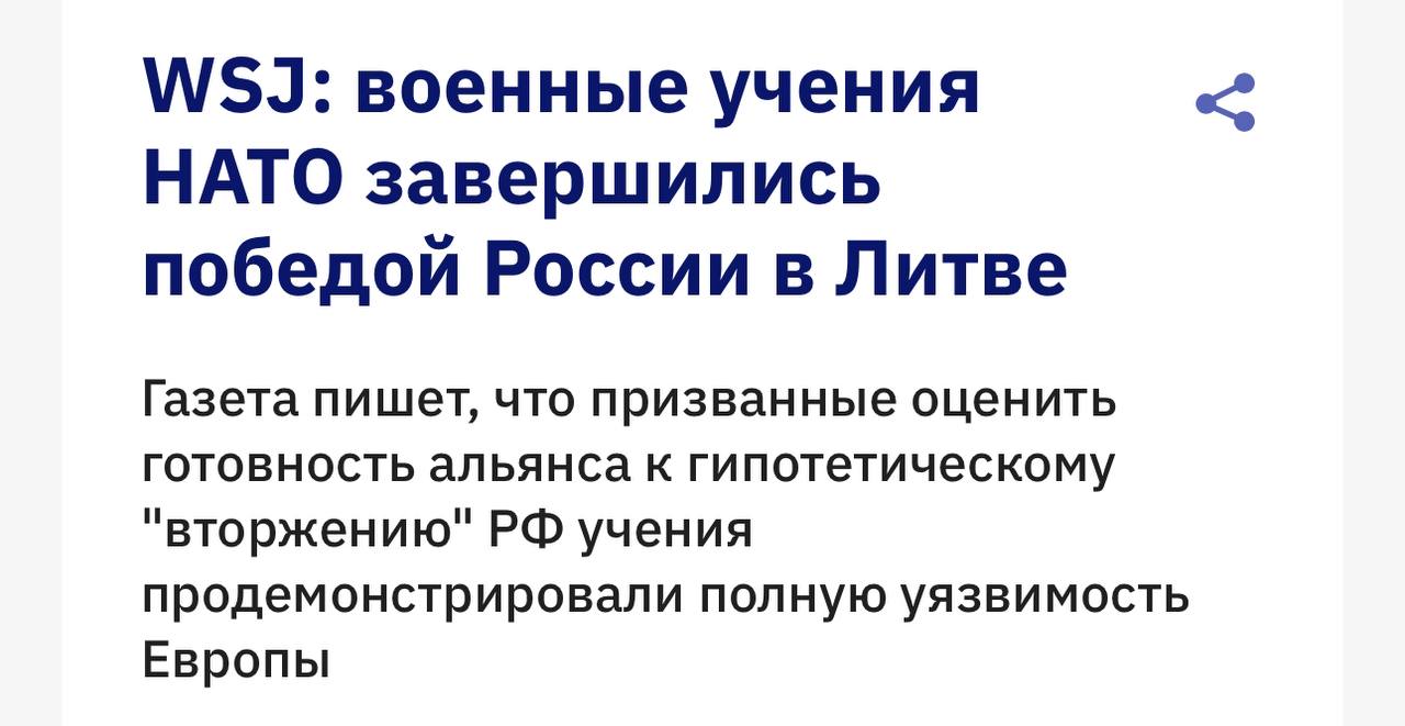 Страны НАТО потерпели поражение в ходе военных учений, имитирующих столкновение с Россией в Литве. Об этом пишет газета The Wall Street Journal. www.wsj.com/