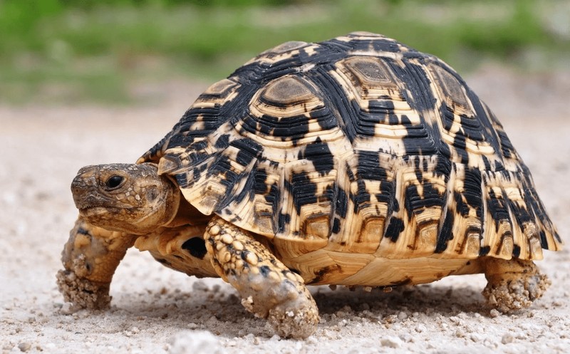 Одна из самых красивейших черепах имеет и другое название – пантеровская. Это довольно крупный вид черепах, распространенный в Африке. Самцы бывают очень больших размеров – однажды даже была зафиксирована особь 65,5 см. и весом 43 кг! Домкрат проживал в Африке в Национальном Парке слонов «Аддо».