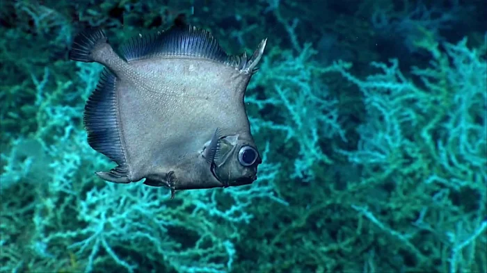 Большинство рыб и беспозвоночных с этих глубин проводят жизнь в бесконечной вертикальной миграции. Ночью поднимаются к богатым водам поверхности, а днём снова прячутся во тьме от крупных хищников. Но не солнечники. Они со своего уровня ни ногой. Даже глаза огромные отрастили, чтобы видеть в почти полной темноте. Именно поэтому о них известно крайне мало, даже поймать рыбку — задача нетривиальная.