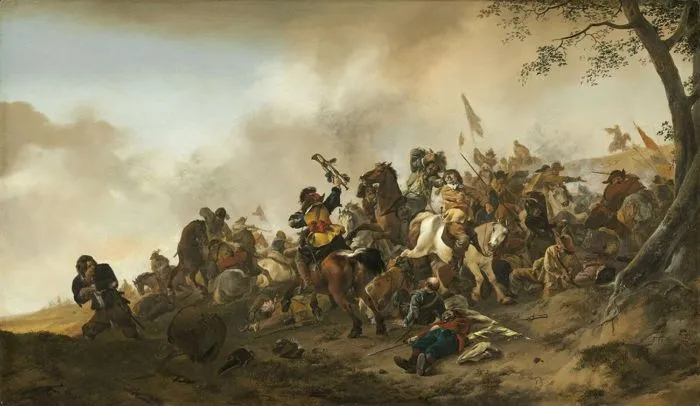 Читая документальные свидетельства, поражаешься беспринципности и ожесточению сторон. Причем то была, судя по всему, стратегия выживания. Так, любая победа над врагом оборачивалась грабежом обоза и ревизией карманов мертвецов. Занимались этим и сами солдаты, и мирные люди, вблизи жилья которых происходило столкновение, и шлейф армий из жен и маркитанток. Многие свидетели вспоминают, что женщины, сопровождавшие армию в походах, после сражения принимались активно грабить погибших. Заодно добивая раненых – чтобы их ограбить тоже. По возможности, к ним подключались крестьяне, которых война лишила шанса жить мирным трудом. И вскоре поля сражений превращались в огромную барахолку.