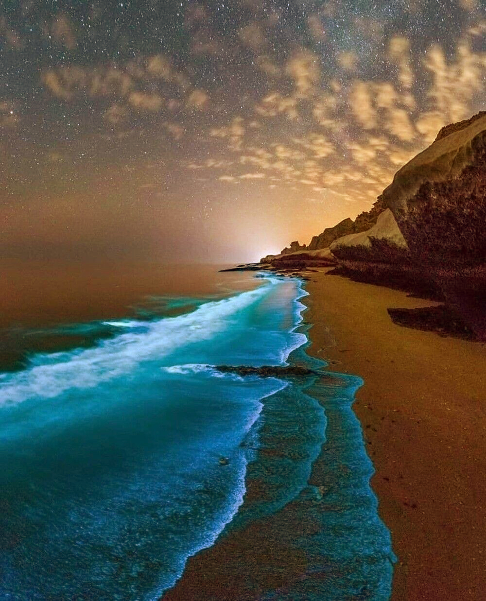 2. Биолюминесцентный фитопланктон — это вид светящегося планктона (фотография сделана в Персидском заливе)