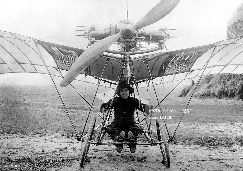 - (Eingeschränkte Rechte für bestimmte redaktionelle Kunden in Deutschland. Limited rights for specific editorial clients in Germany.) Early days of aviation Miss Aboukaia (Paris) in a Santos-Dumont flying machine — 1910 — Vintage property of ullstein bild (Photo by ullstein bild/ullstein bild via Getty Images)