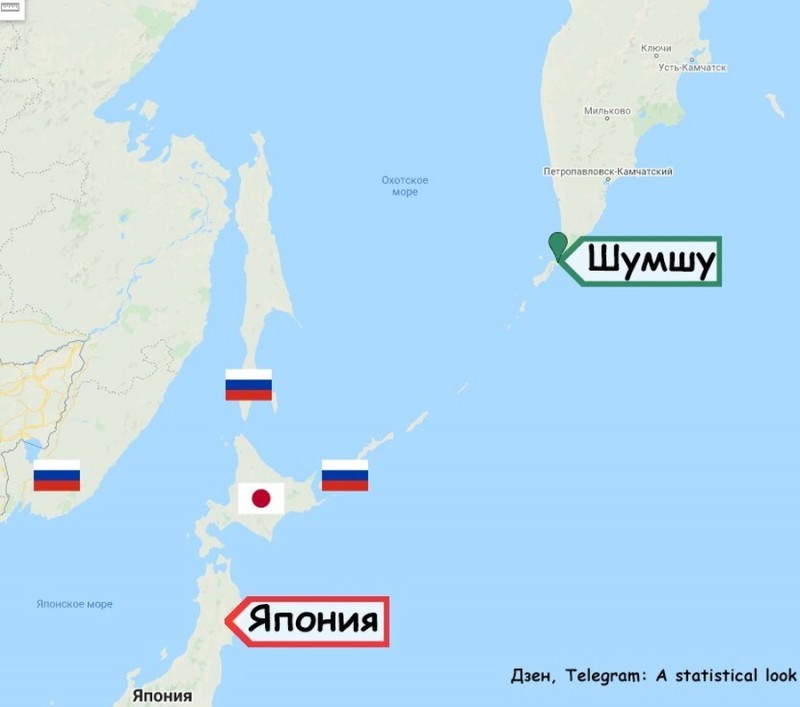 Ну как передать… Речь идёт всего лишь об аренде одного острова, Шумшу, ближайшего к Камчатке. И, возможно, даже не всего острова, а только лишь какой-то его части. Предполагается, что датская компания Попенкакен Copenhagen Offshore Partners («Копенгагенские Офшорные Партнёры») вложит в инфраструктуру острова 2-2,5 миллиарда долларов, пользуясь льготным налоговым режимом, и построит там ветропарк, чтобы экспортировать потом в Японию электричество или выработанный с помощью электричества водород.