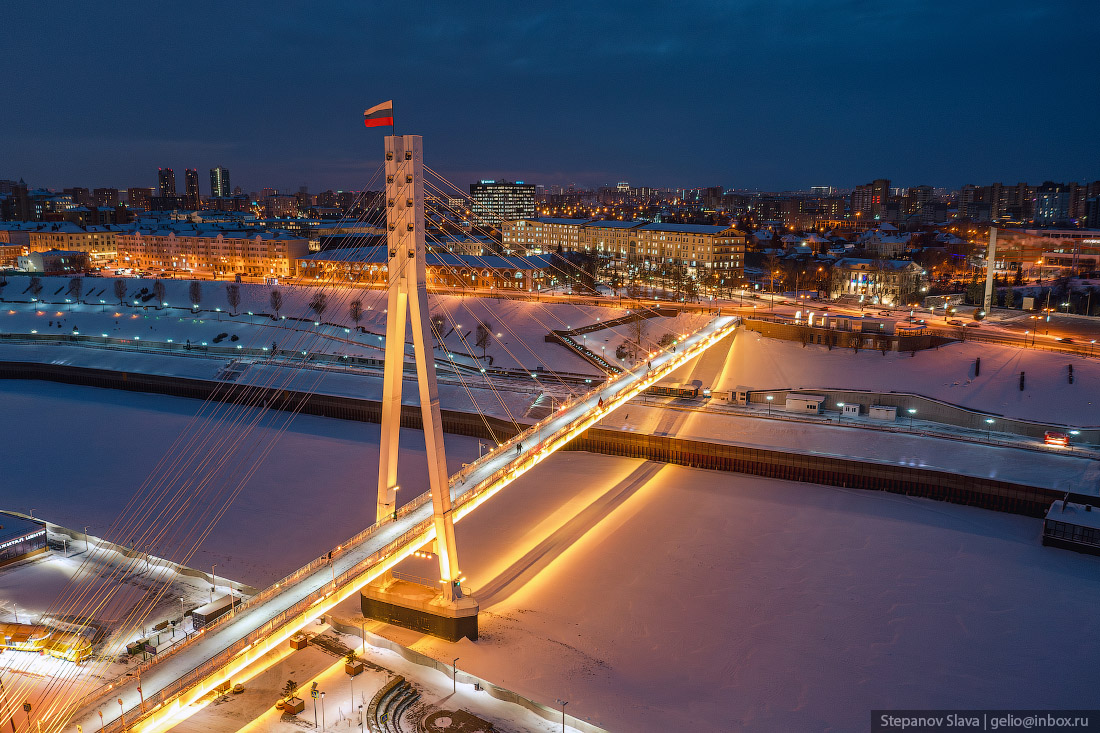 2. «Тюменский мост Влюблённых» — вантовый пешеходный мост через Туру.