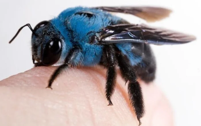 Еще одна удивительная пчела голубого цвета из семейства пчелиных — Xylocopa caerulea, известная также как пчела-плотник.