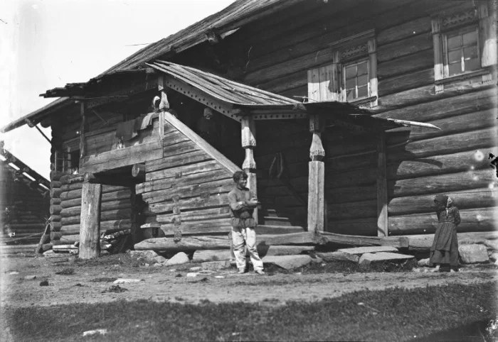 Мальчик около крестьянской избы. Архангельская губерния, Пинежский уезд