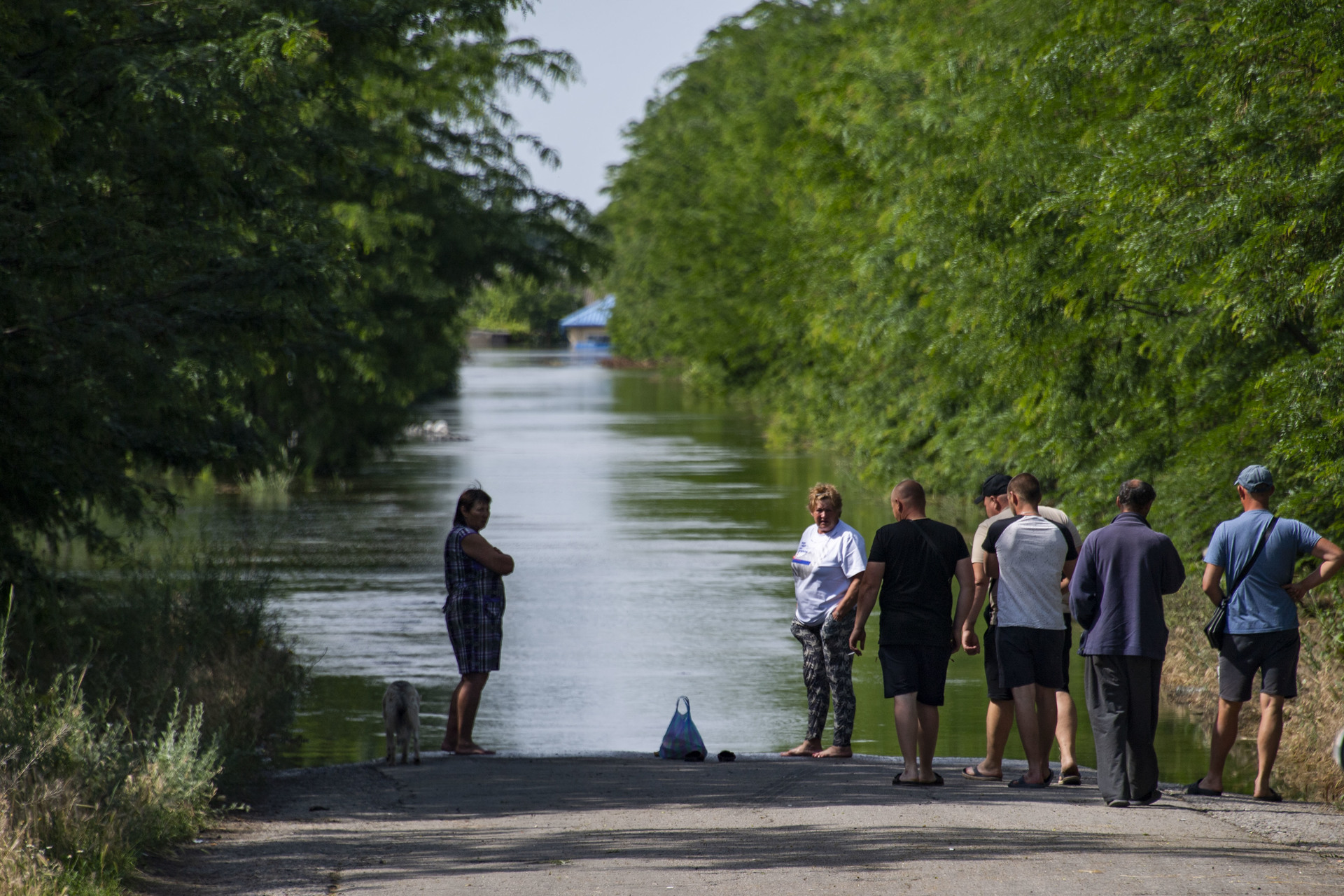 - Люди в населённом пункте Корсунка, который был почти полностью затоплен после разрушения Каховской ГЭС