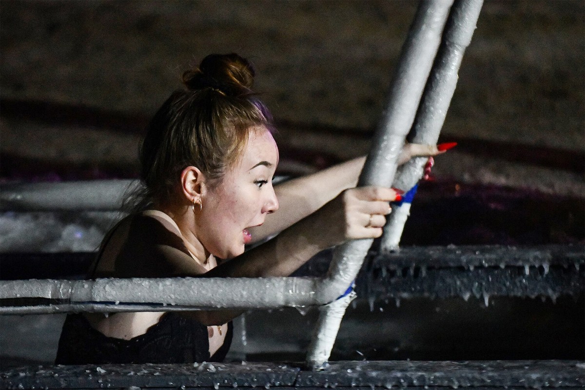 Окунуться в прорубь решились не все. Некоторые набирали воду и умывают лицо и руки — после освящения вода во всех источниках считается целебной.