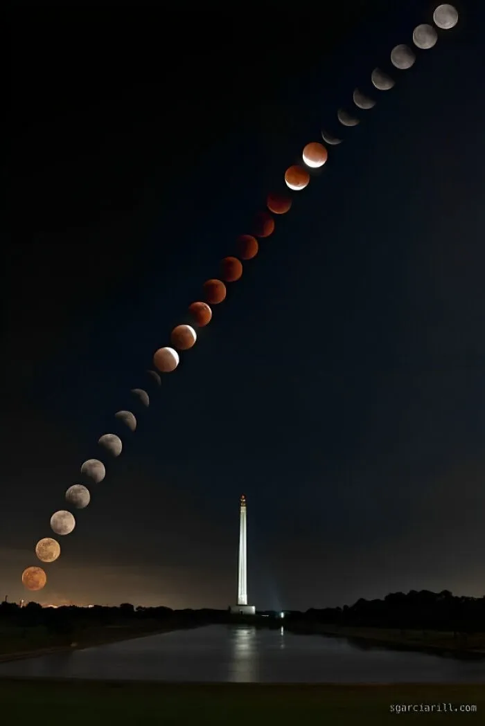 17. Затмение Кровавой Луны, вид из Ла Порте, Техас, у памятника Сан-Хасинто