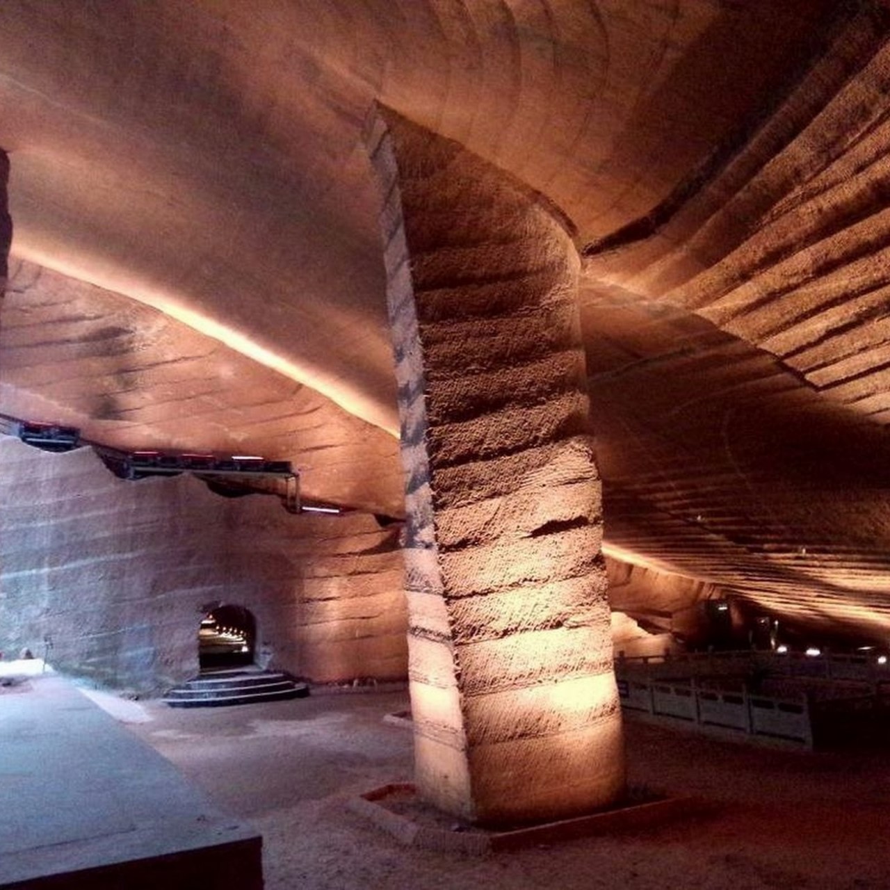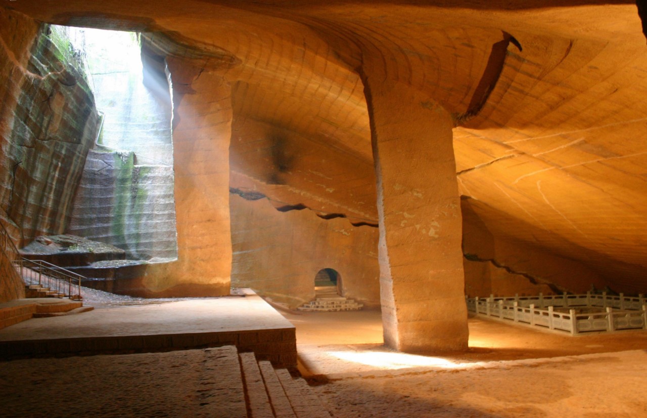 Поражает воображение не только масштаб этих туннелей и гротов, которые называют Гроты Лонгью (Longyou Grottoes), построенных в провинции Чжэцзян в 212 году до нашей эры, но и удивительная отделка от пола до потолка, состоящая из равномерно расположенных под углом 60 градусов наклонных линий.