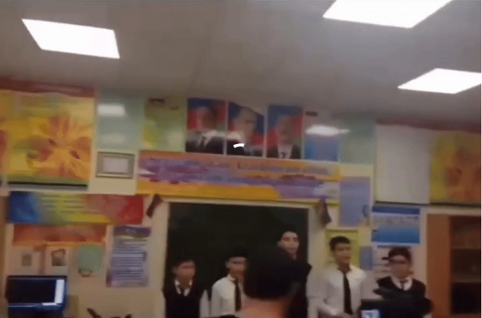 Над коричневой классной доской — портреты Гейдара и Ильхама Алиевых. Портрет президента России тоже есть, но Алиевых-то два. Что это за школьная программа, в которой утверждены подобные тезисы? Кто-то из экспертов проверял учебники, по которым учатся эти дети? В официальном тг-канале республиканского Минобрнауки полно новостей, но ни слова о странном уроке.